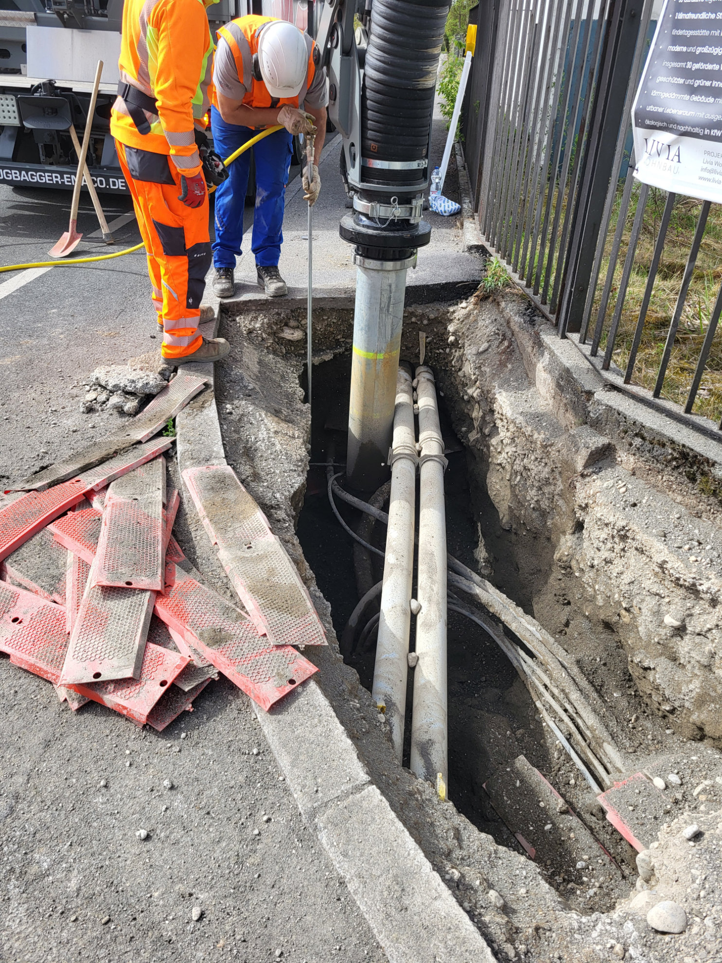 Ein paar Versorgungsleitung im Plan, die Realität zeigt den Vorteil des Absaugens gegenüber eines Baggers